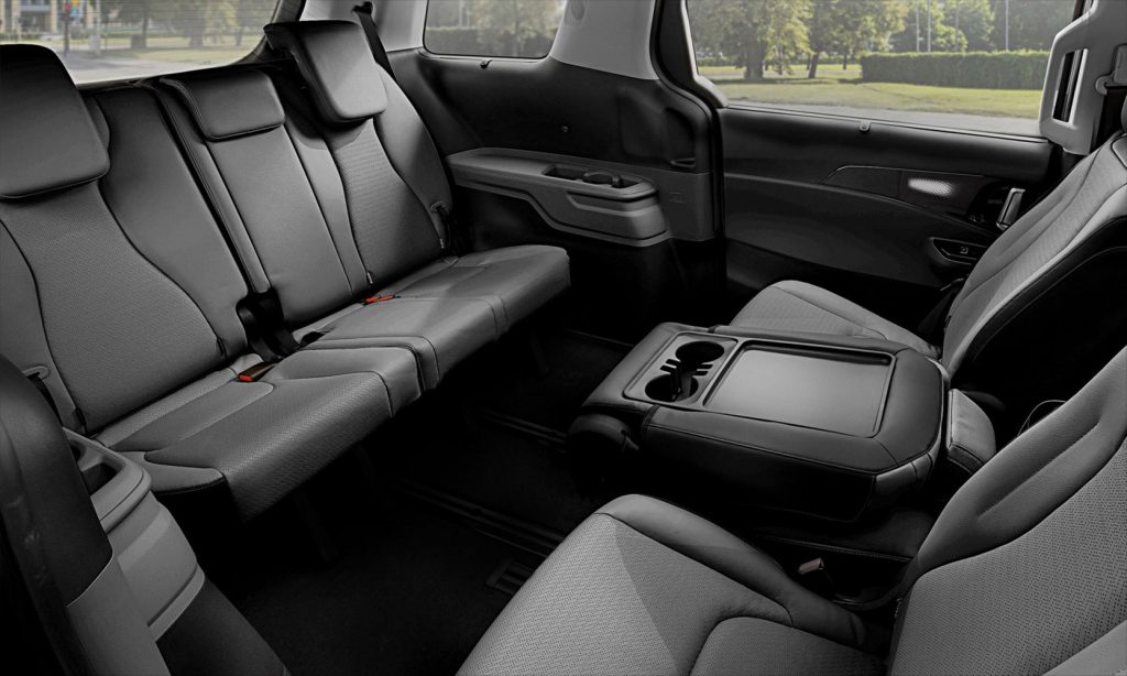Seja para uso familiar ou corporativo, os bancos da Kia Carnival permitem diversas configurações, como criar um lounge doméstico, com os assentos da segunda fileira de frente para os assentos da terceira fileira.