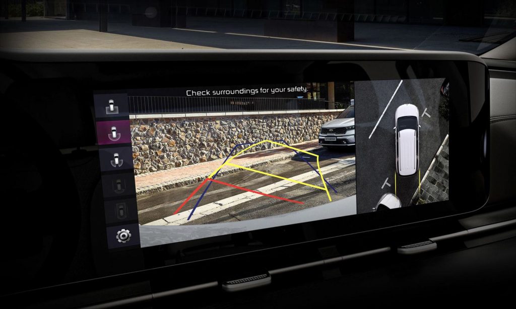 A Kia Carnival possui câmeras com visão 360° de alta definição que proporcionam uma visão completo do entorno do veículo, além de contar com sensores de estacionamento dianteiros, traseiros e laterais que oferecem maior comodidade ao dirigir.