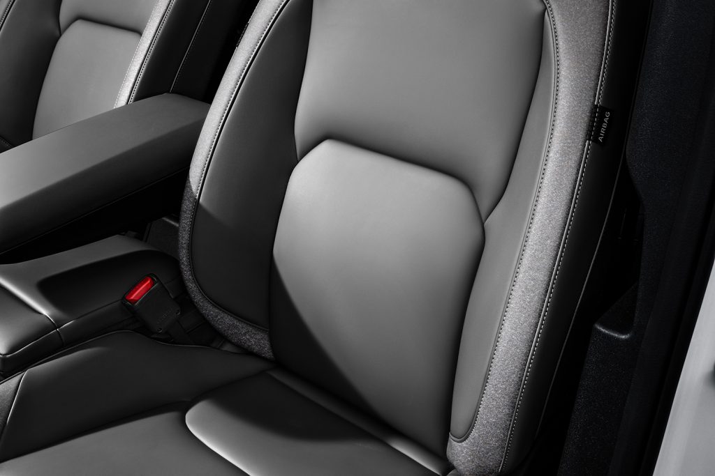 Bancos dianteiros com aquecimento, ajustes elétricos, inclusive lombar para o motorista, com revestimento por materiais sustentáveis, em tecido de PET reciclado e couro bio-sintético (altaica).