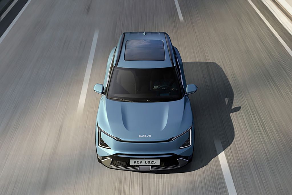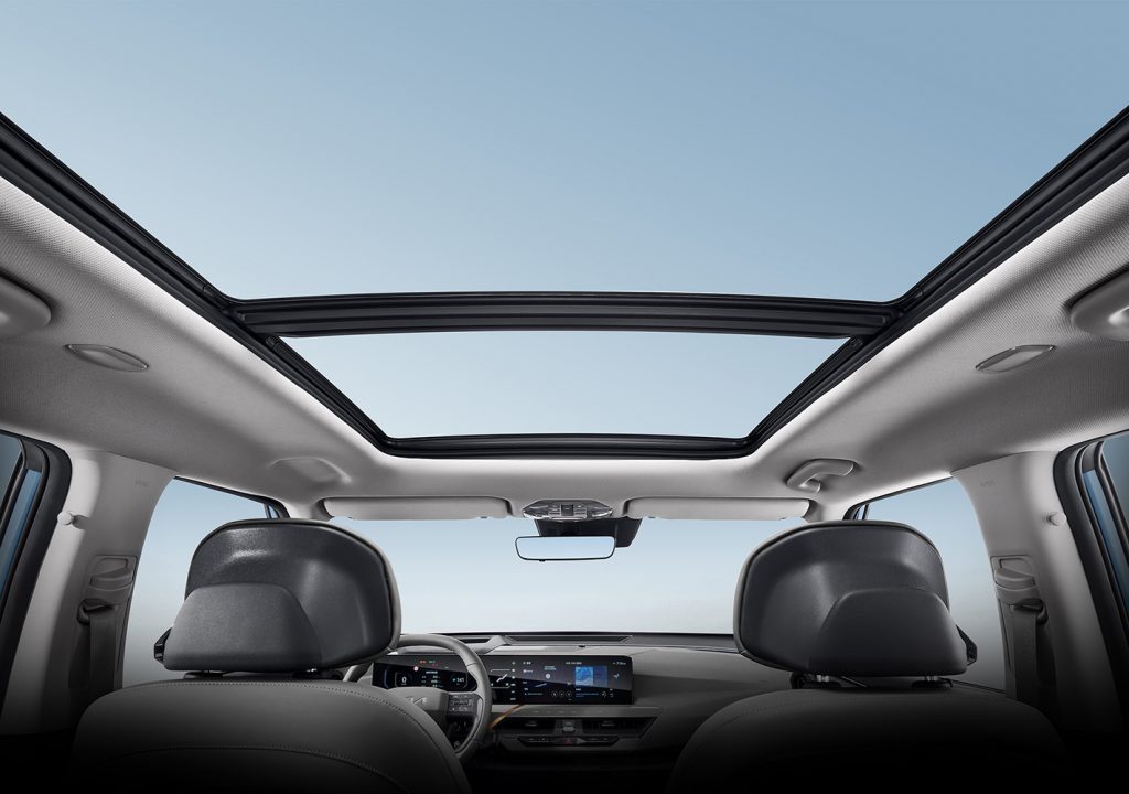 O Kia EV5 oferece teto solar panorâmico, com acionamento elétrico, proporcionando uma experiência relaxante a todos os ocupantes do veículo.