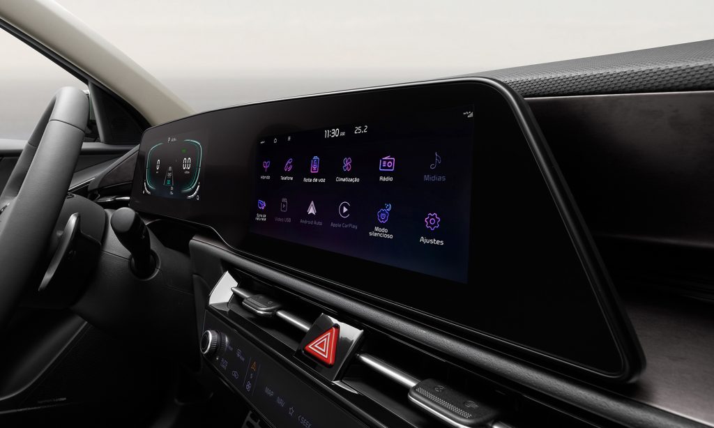 Sistema Multimídia com tela LCD de 10,25″ sensível ao toque e conectividade sem fio Apple CarPlay e Android Auto.