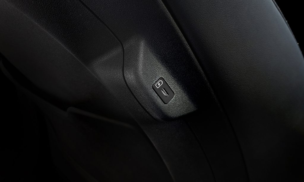 - Portas USB (2) tipo C no encosto dos bancos dianteiros para carregamento de equipamentos eletrônicos